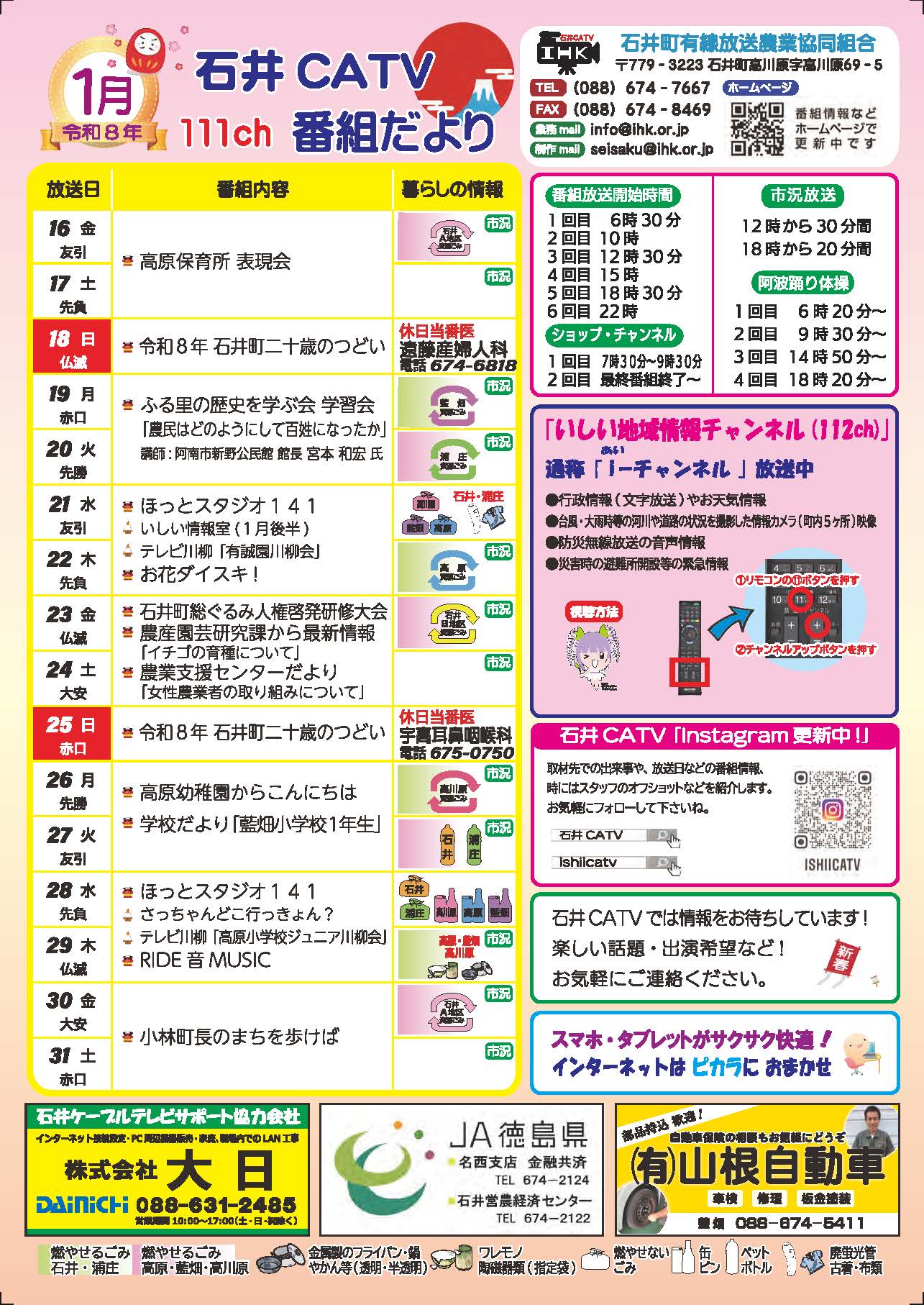 令和8年1月の番組だよりが出来ました!